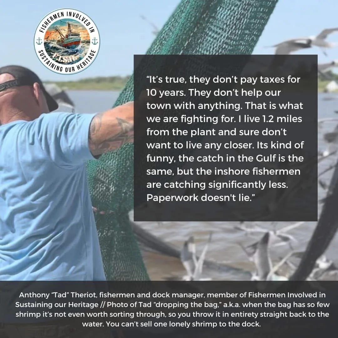 Fishermen Involved in Sustaining our Heritage (FISH) is a Louisiana-based, indigenously-led nonprofit organization and coalition of dedicated commercial fishermen. Our mission is to passionately advocate for environmental preservation, safeguarding against LNG (Liquefied Natural Gas) threats, and championing the rights of commercial fishermen to flourish and prosper. Through unwavering dedication, we raise awareness and extend direct mutual aid to uplift and support the vibrant community of Gulf Coast commercial fishermen.